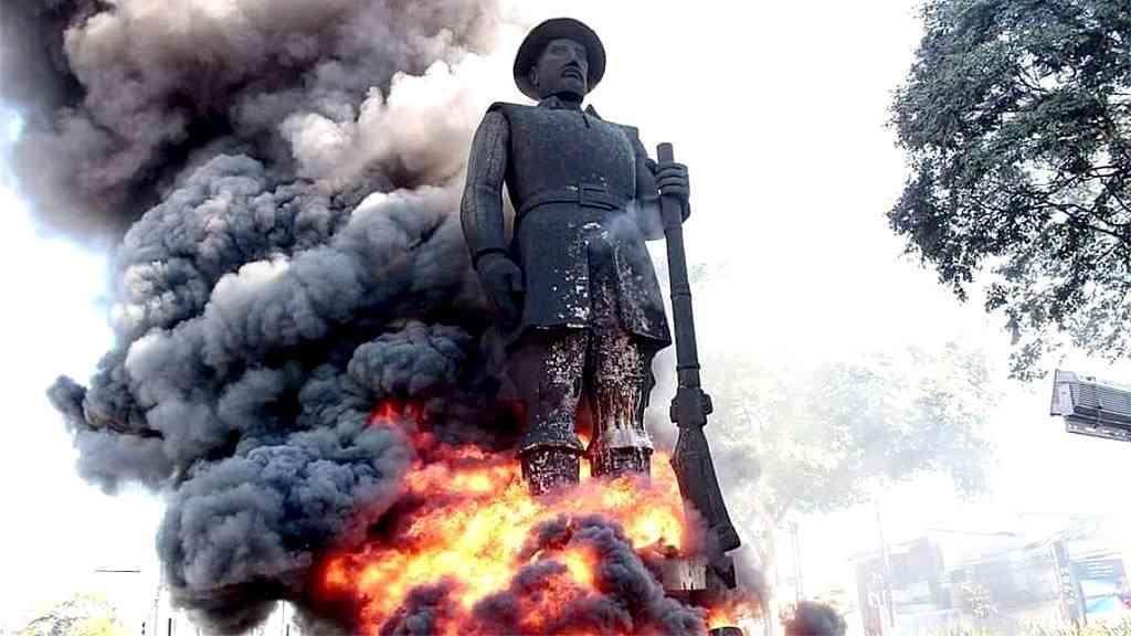 ‘Galo’ permanece preso por atear fogo a estátua de escravagista