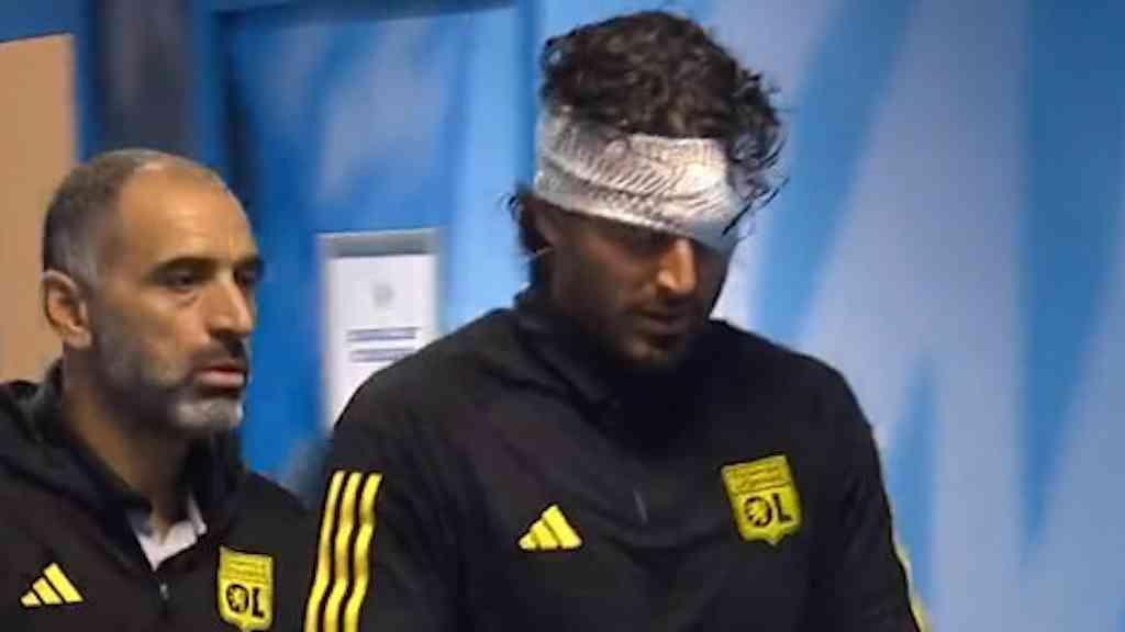 O ex-lateral italiano, campeão do mundo em 2006, foi ferido no rosto por um objeto e sangrou bastante. O treinador do Lyon sofreu um profundo corte na pálpebra esquerda, bem perto dos olhos.