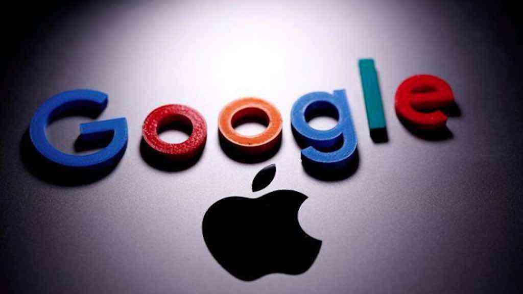 Imagens sobrepostas dos logotipos do Google e da Apple