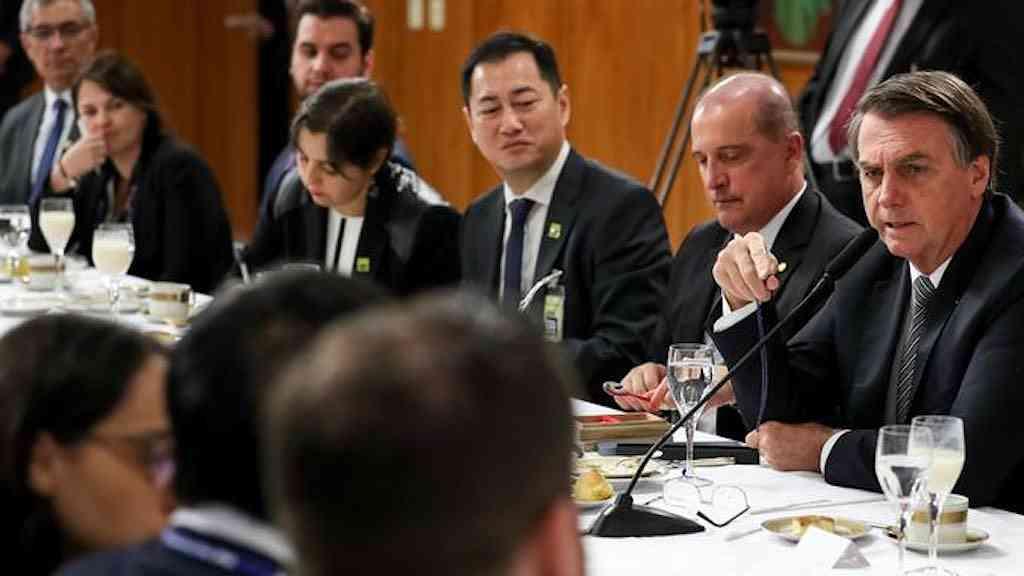 Onyx Lorenzoni e Bolsonaro em café da manhã com representantes da imprensa estrangeira