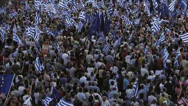Centenas de gregos já começaram a aparecer na praça central de Syntagma em frente ao parlamento nacional para comemorar o resultado do referendo, após uma semana de desespero em que bancos fecharam as portas e houve racionamento de saque de dinheiro nos caixas para prevenir o colapso do sistema financeiro grego.