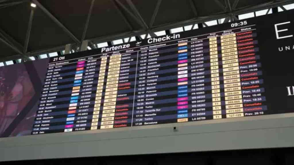 Já a RyanAir informou que mais de 600 voos de e para a Itália foram cancelados. Também foram afetados passageiros da Lufthansa, Vueling, Brussels, KLM, British Airlines, Iberia, TAP, Air France, SAS, Finnair, Wizzair, Swiss e Norwegian.