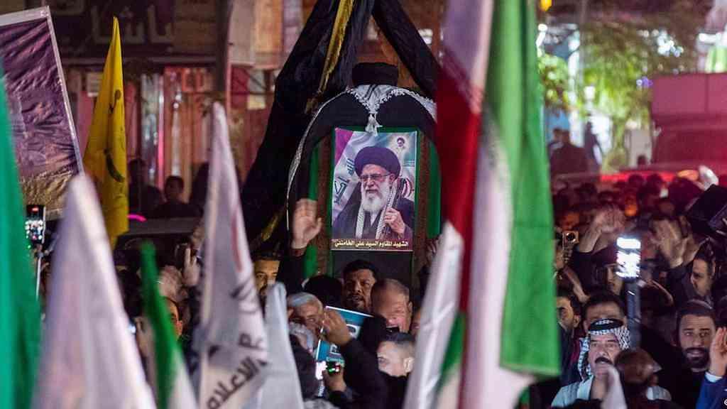 Após Israel assassinar o líder supremo do Irã, aiatolá Ali Khamenei, houve vários dias de protestos em frente à embaixada dos EUA em Bagdá, no Iraque. Os protestos se tornaram violentos, e observadores acreditam que muitos dos manifestantes foram enviados ou incentivados a comparecer por grupos paramilitares alinhados ao Irã.