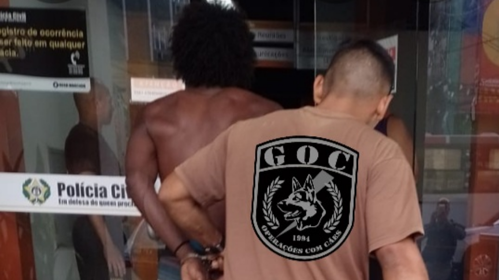 Guardas do Grupamento de Operações com Cães (GOC) atuaram na prisão de um homem por desacato, na segunda-feira, na Avenida Francisco Bicalho, em São Cristóvão.