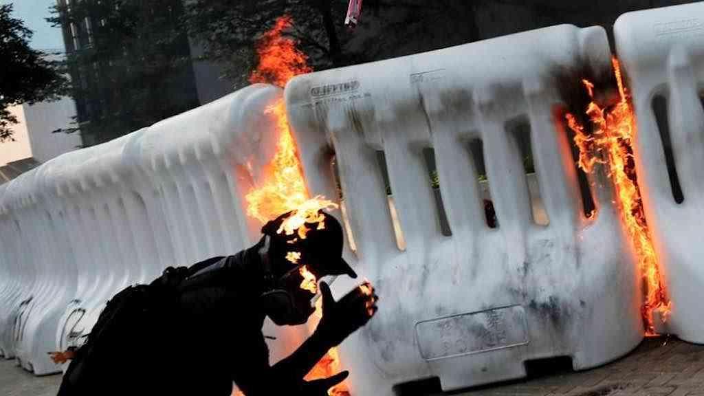 Milhares de manifestantes antigoverno, muitos usando máscaras, bonés e óculos escuros para se disfarçar, correram pelas ruas em verdadeiras perseguições de gato e rato com a polícia, provocando incêndios nas ruas e bloqueando algumas delas no centro de Hong Kong, onde muitos distritos comerciais cruciais se localizam.