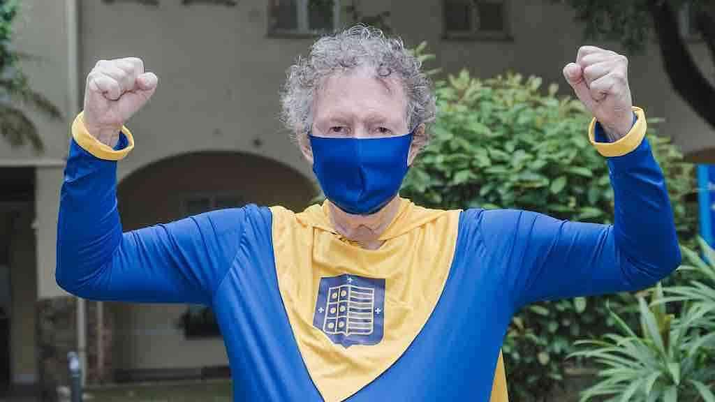 O super-herói é vivido por João Carlos de Azevedo Jacobsen, 69 anos, residente da CSL que, assim como todos os demais idosos, sente falta de estar perto e abraçar amigos e familiares.