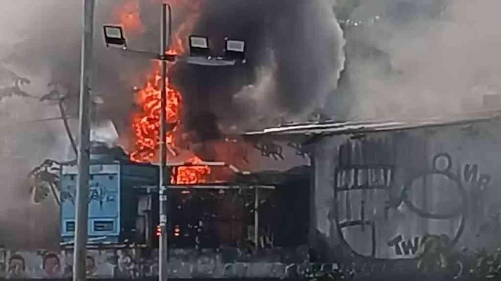 Funcionários tentaram combater o fogo inicialmente com baldes de água. Colunas de fumaça são visíveis de vários pontos da Zona Sul.