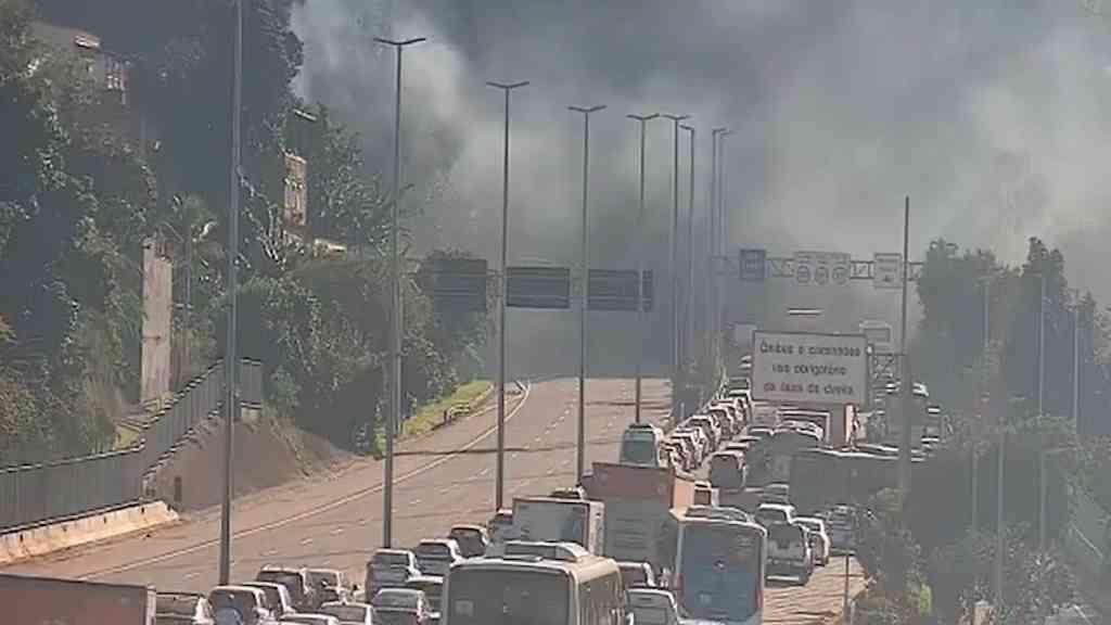 O trânsito precisou ser interrompido nos dois sentidos da via, uma que era a do acidente e a outra em direção à Barra da Tijuca porque também havia grande quantidade de fumaça.