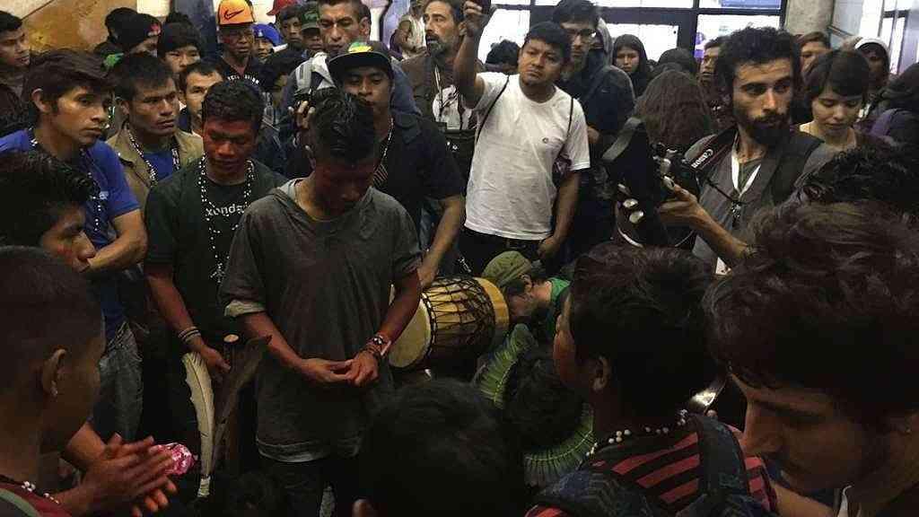 Eles protestam contra a decisão do Ministério da Justiça que anulou a demarcação da Terra Indígena do Jaraguá, na Zona Norte da cidade