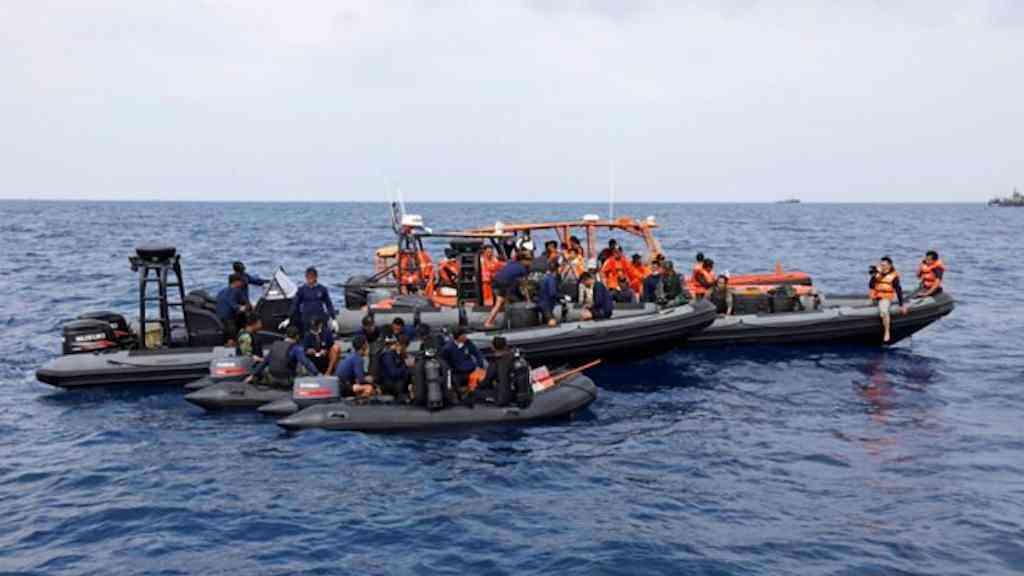 Só fragmentos e partes de corpos foram encontrados no litoral de Karawang, ao leste de Jacarta.