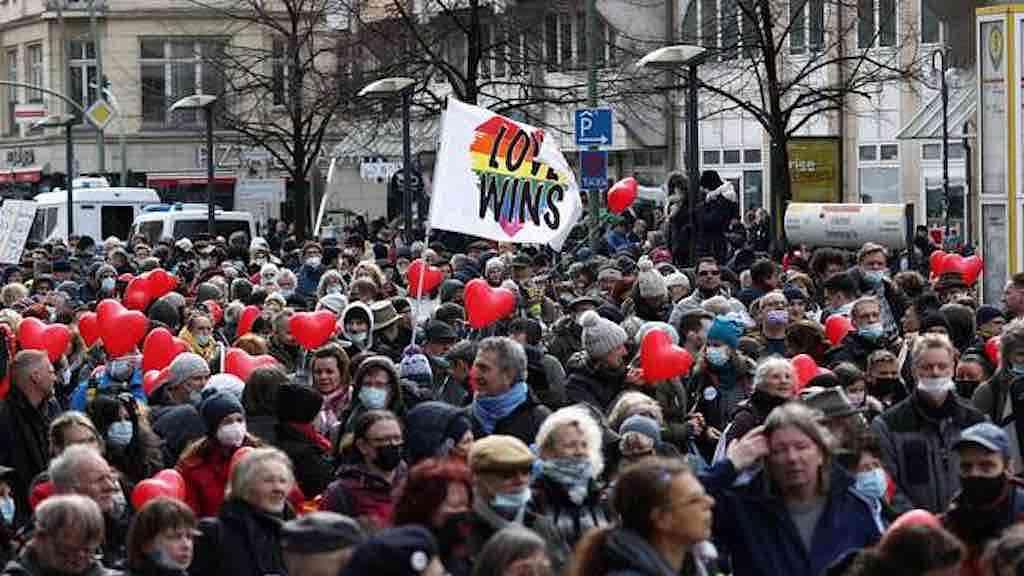Manifestação contra restrições impostas para conter disseminação do coronavírus em Berlim