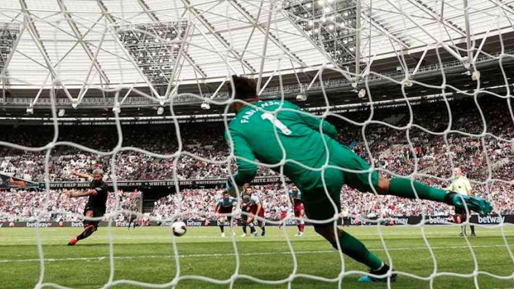 Aguero, do Manchester City, bate pênalti contra o West Ham, pelo Campeonato Inglês Lionel Messi