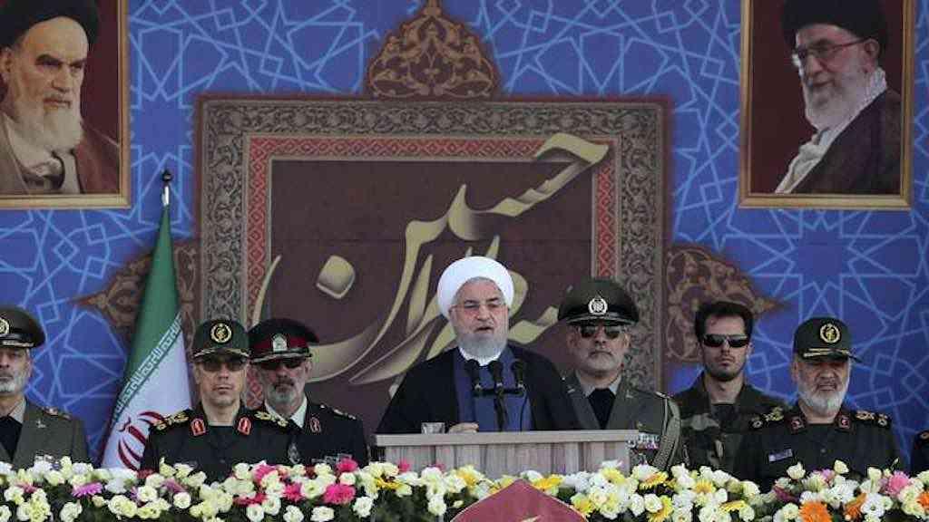 Presidente Hassan Rohani discursa em parada militar anual