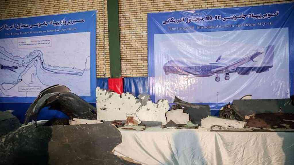 Destroços de drone dos EUA derrubado pelo Irã, de acordo com as forças iranianas
