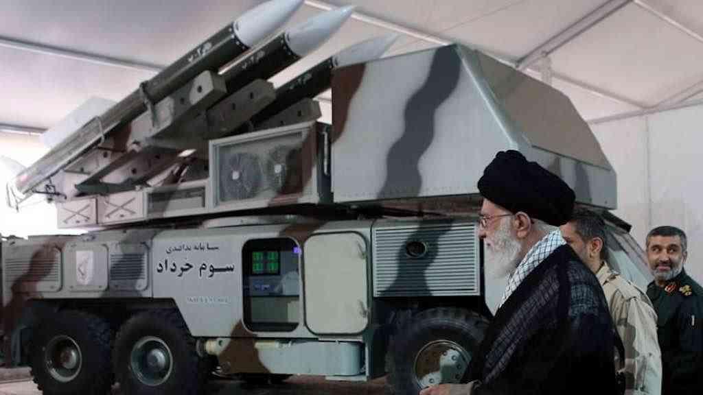 Líder supremo do Irã, aitaolá Ali Khamenei, ao lado de sistema de mísseis Fars
