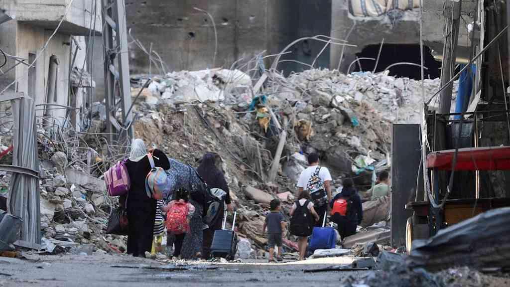 Israel acusa os militantes de se esconderem entre os civis e diz que adverte os deslocados para que saiam do caminho de suas operações contra os combatentes.