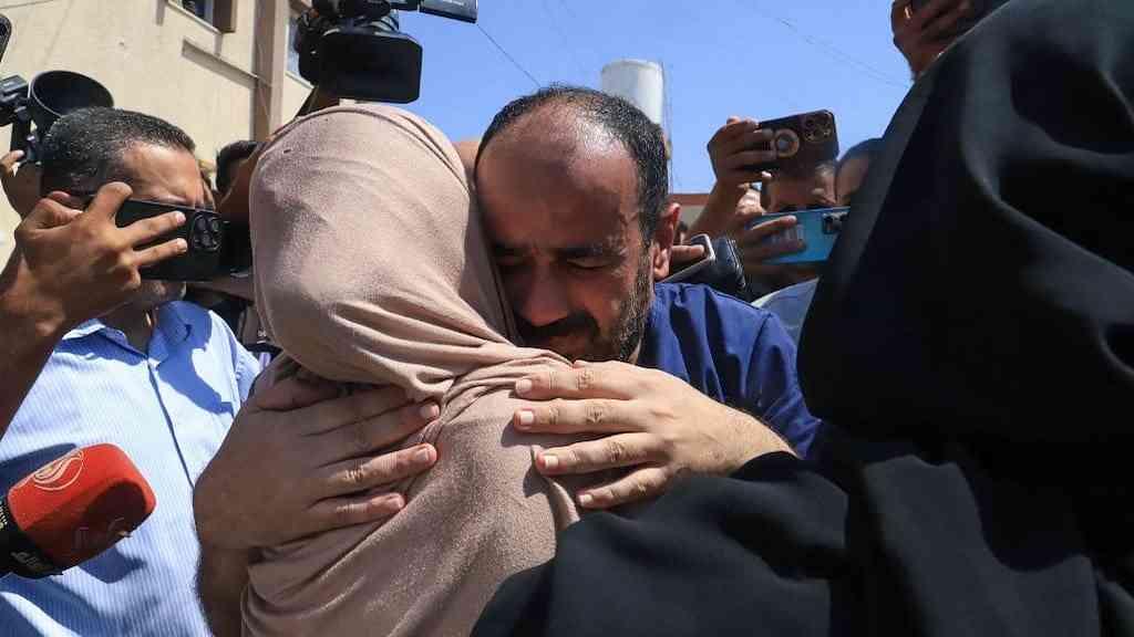Um correspondente da agência francesa de notícias AFP observou vários homens abraçando seus parentes no Hospital dos Mártires de Al Aqsa.