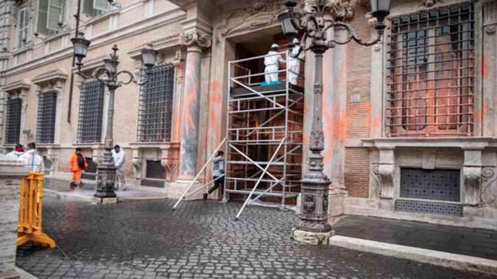 Os três jovens que tiveram a prisão decretada na segunda após jogarem tinta contra a fachada do Palazzo Madama, sede do Senado da Itália, foram libertados nesta terça-feira.