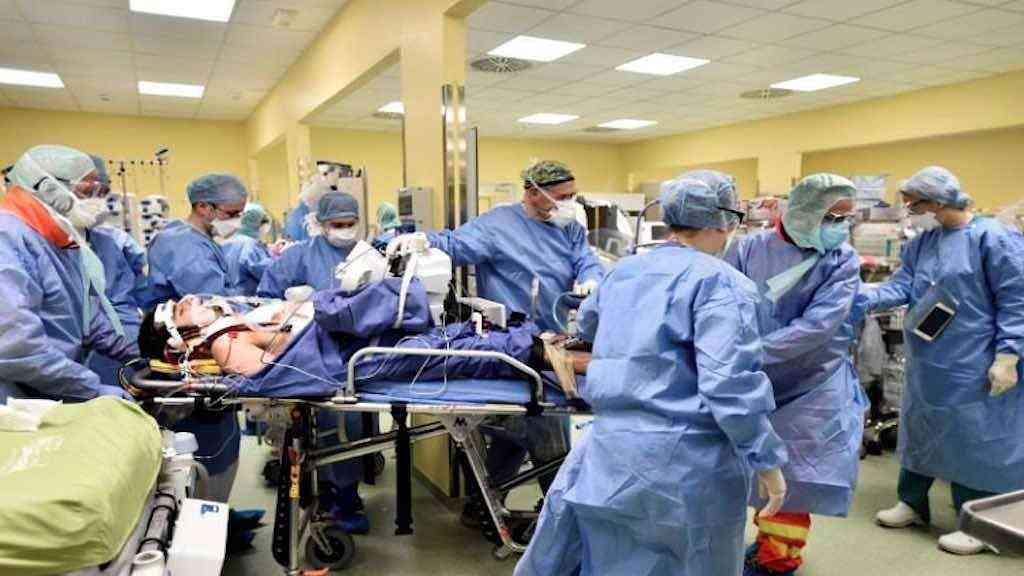 Equipe médica de hospital em Milão transportando paciente de 18 anos contaminado pelo coronavírus