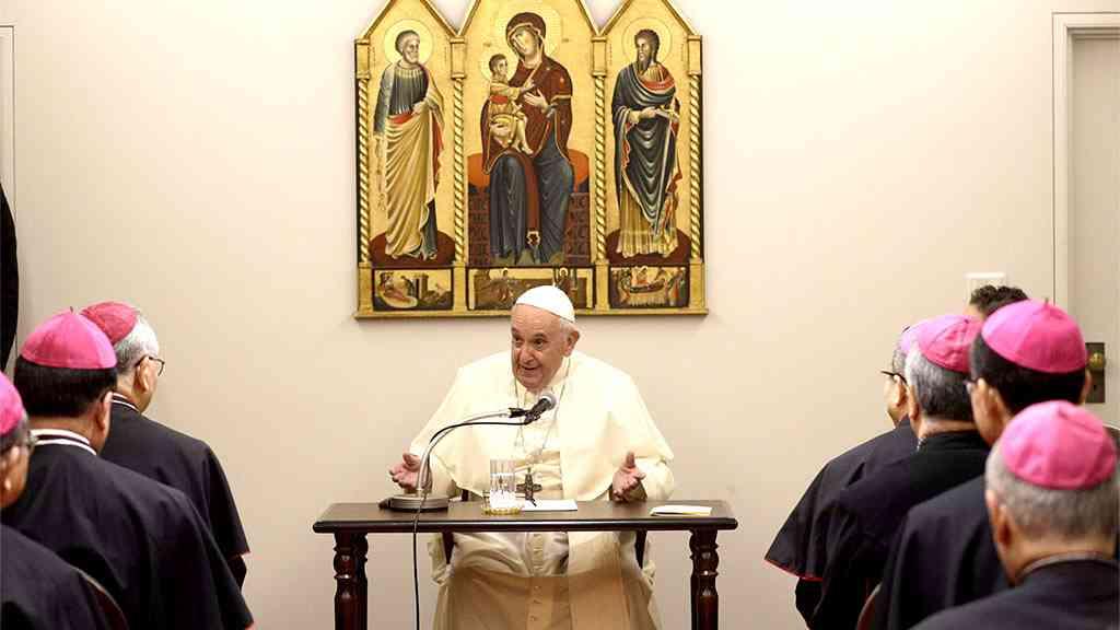 Na sua chegada a Tóquio, o papa Francisco reuniu-se com os bispos católicos do Japão