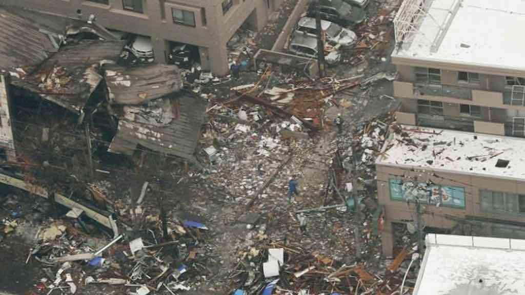 Imagem aérea de local onde houve explosão em Sapporo, no Japão