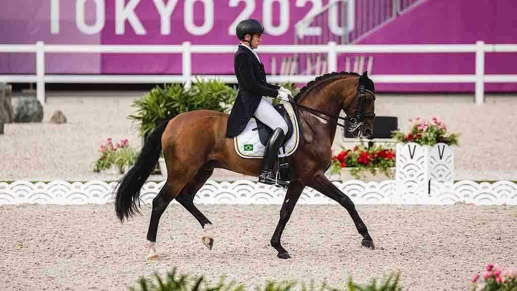 O cavaleiro João Victor Marcari Oliva, montando Escorial Horsecampline, alcançou na madrugada deste sábado, no horário de Brasília, a melhor nota do país no hipismo adestramento na história das Olimpíadas.