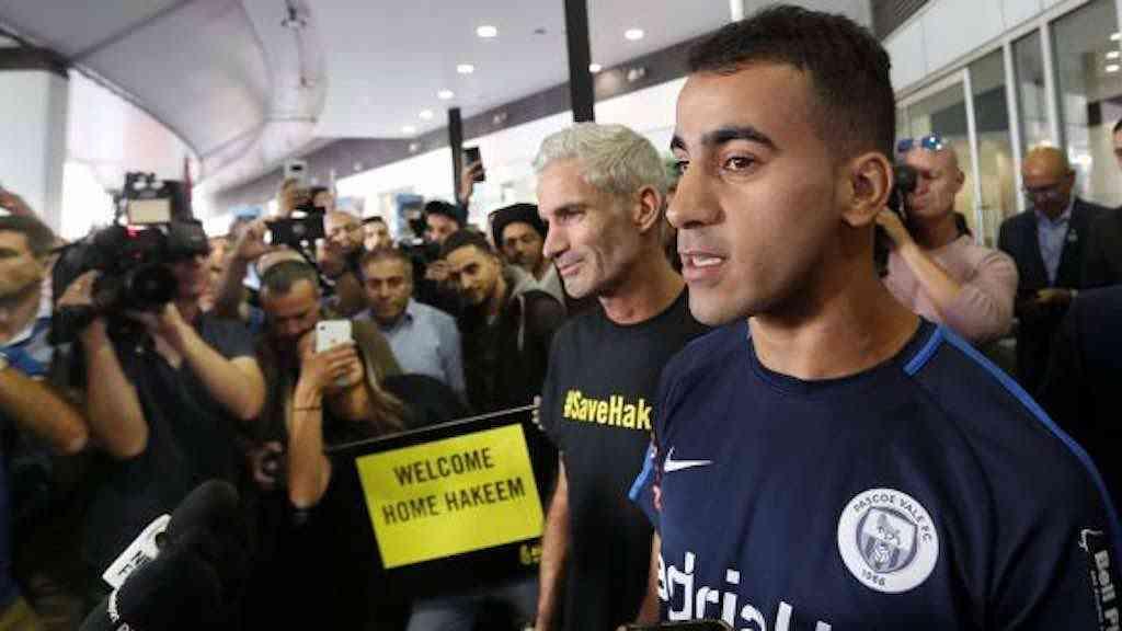O jogador do Bahrein, Hakeem al Araibi, chegou nesta terça-feira em Melbourne, na Austrália, após passar mais de dois meses preso na Tailândia por um pedido de extradição para seu país.