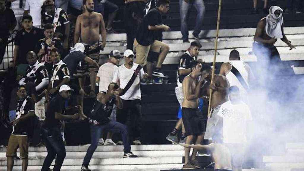 Logo após o fim do jogo, torcedores do Vasco arremessaram objetos no campo. Inclusive cadeiras, para impedir a saída do time do Flamengo. A polícia reagiu com bombas de gás lacrimogêneo e de pimenta e o conflito se intensificou.