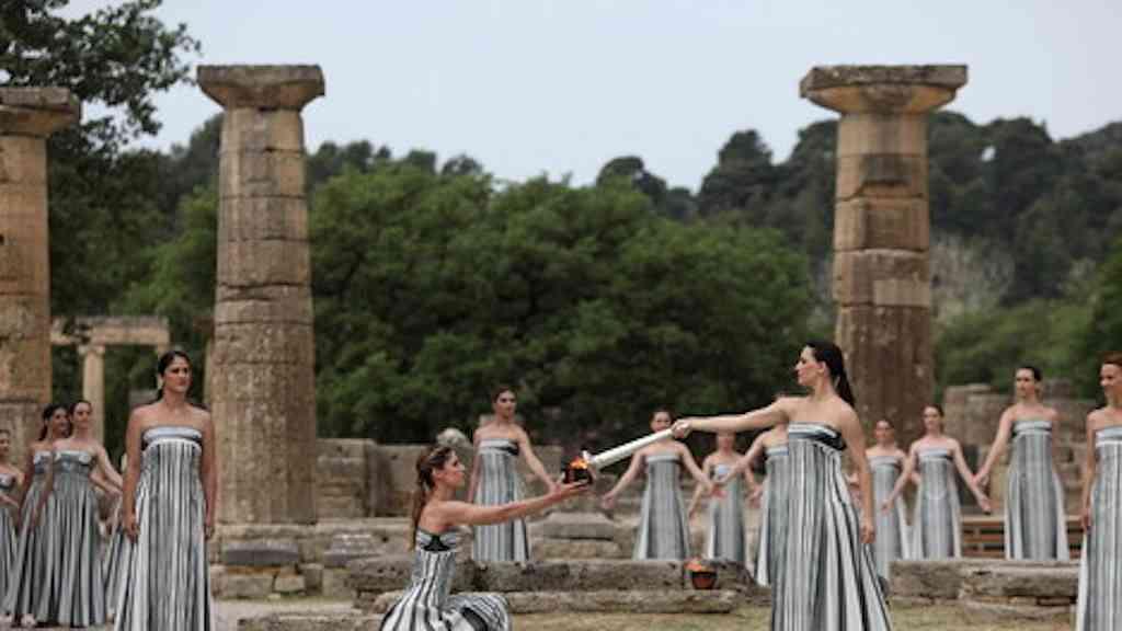 Em uma cerimônia no Templo de Hera, na Grécia, a chama olímpica foi acesa nesta terça-feira e deu início ao revezamento que terminará somente em 26 de julho, data da abertura das Olimpíadas de Paris, na França.