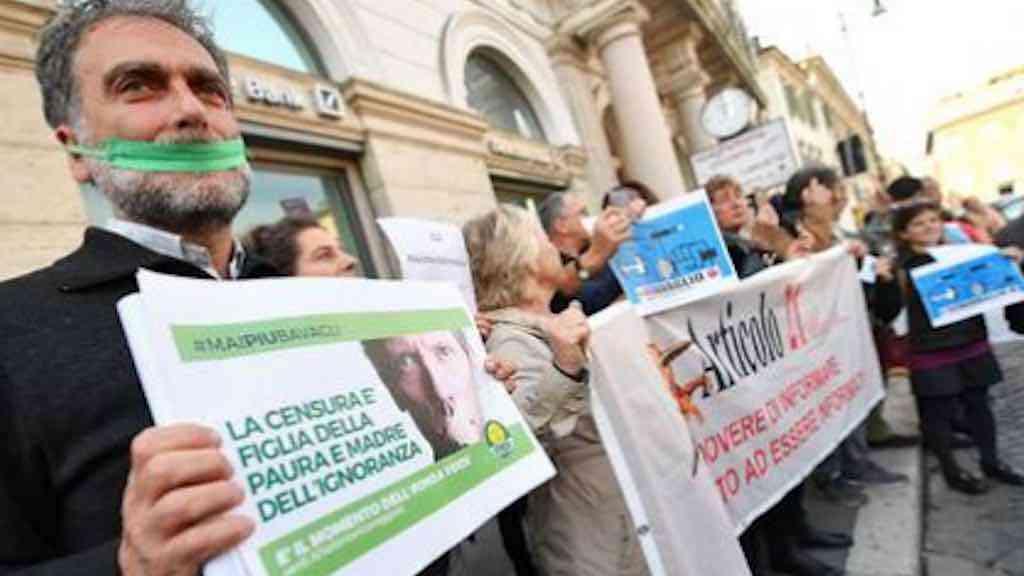 Os protestos foram convocados pela Federação Nacional de Imprensa e representam a maior reação até agora à postura agressiva do M5S.