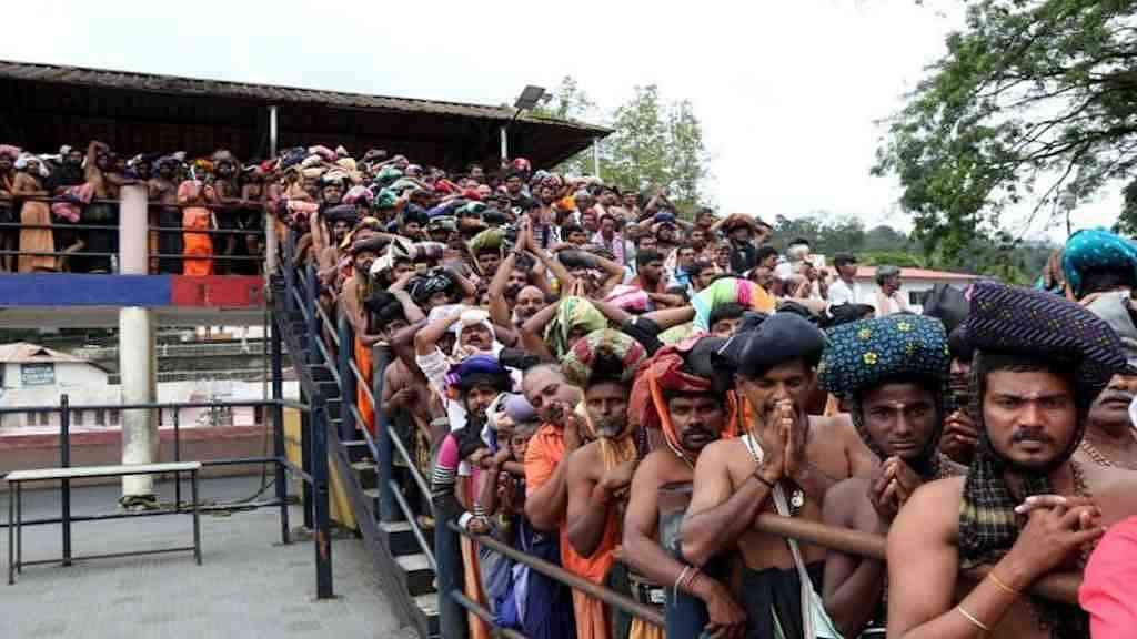 Devotos fazem fila dentro do templo Sabarimala em Kerala, na Índia
