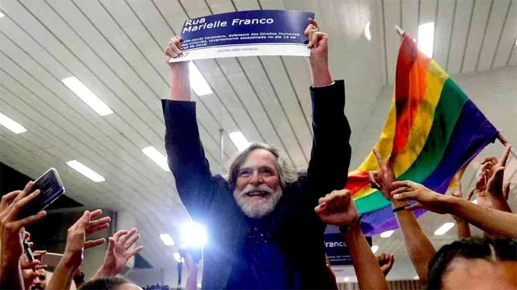 O autoproclamado José de Abreu chegou ao Brasil na noite do 8 de março e foi recebido por uma pequena multidão no aeroporto do Rio; segurou placa de Rua Marielle Franco e anunciou que vai viajar pelo Brasil, reeditando, de certa forma, a caravana de Lula antes de se tornar preso político.