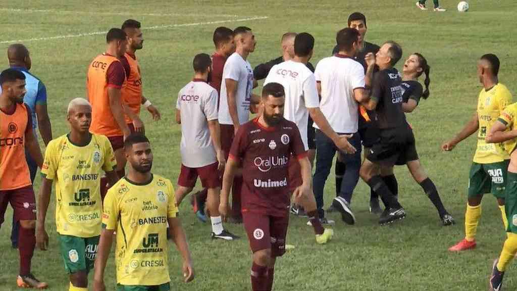 De acordo com a Federação de Futebol do Estado do Espírito Santos (FFES), que publicou no domingo nota de repúdio sobre o ocorrido, se condenado o ex-técnico Rafael Soriano será punido com suspensão mínima de 180 dias pela agressão contra a bandeirinha.