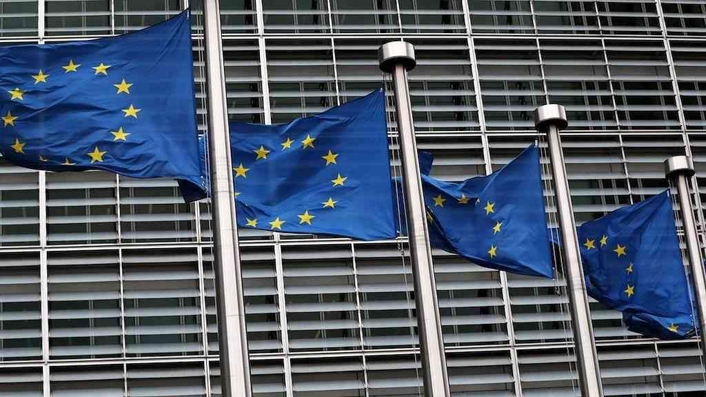 Os líderes da União Europeia (UE) Charles Michel e Ursula von der Leyen advertiram nesta quinta-feira o Kremlin de que ele será "responsabilizado" pelos seus atos, depois de a Rússia lançar operação militar contra a Ucrânia. Bandeiras da União Europeia na sede da Comissão Europeia em Bruxelas, Bélgica.