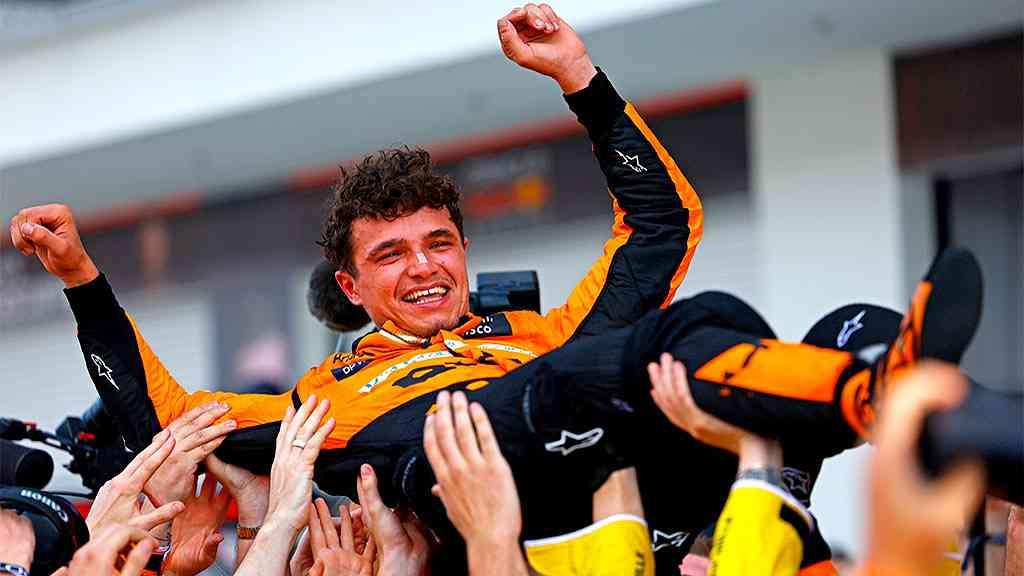 O piloto britânico Lando Norris conquistou sua primeira vitória na Fórmula 1 no GP de Miami, depois de se lançar na dianteira após um oportuno safety car, e chegar à frente do campeão belga Max Verstappen.