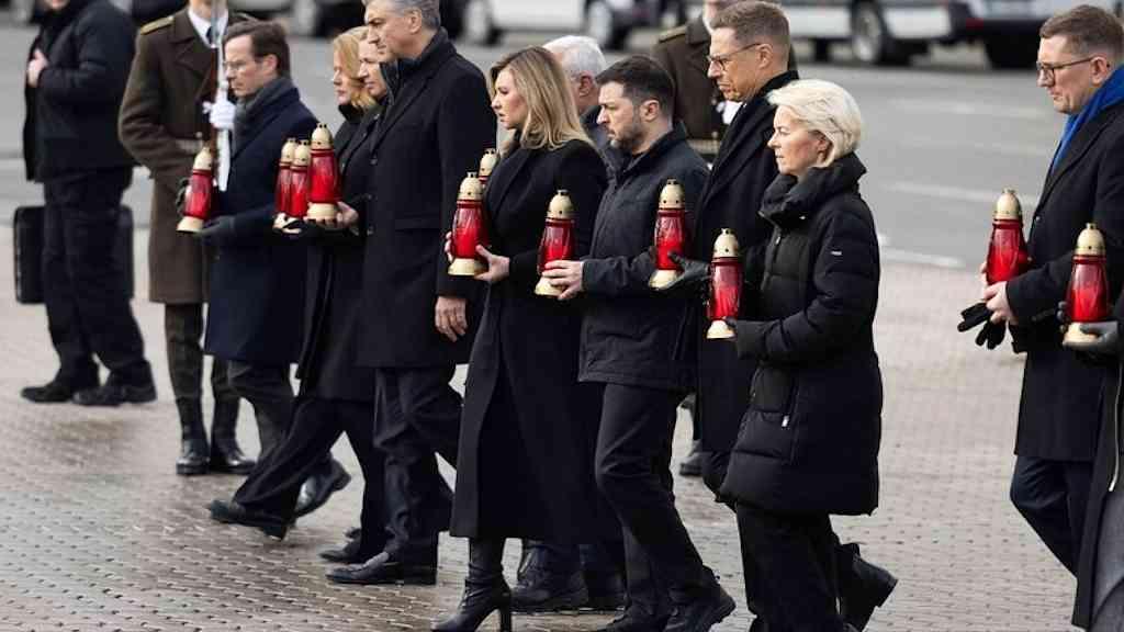 A comitiva encabeçada pelos presidentes Ursula von der Leyen (Comissão Europeia) e António Costa (Conselho Europeu) também inclui os mandatários da Finlândia, Alexander Stubb, e da Lituânia, Gitanas Nauseda, e os primeiros-ministros Andrej Plenkovic (Croácia), Mette Frederiksen (Dinamarca), Kristen Michal (Estônia), Evika Silina (Letônia) e Ulf Kristersson (Suécia).