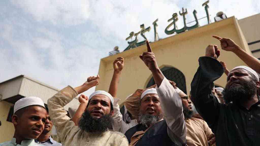 Centenas de manifestantes revoltados em Daca, capital de Bangladesh, bradaram “allahu akbar” (Deus é o maior) depois das orações desta sexta-feira.
