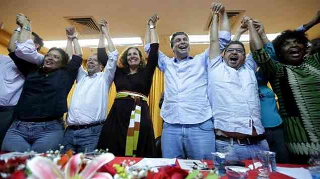 Jandira e Lindberg (C) comemoram a união entre o PT e o PCdoB no Estado do Rio
