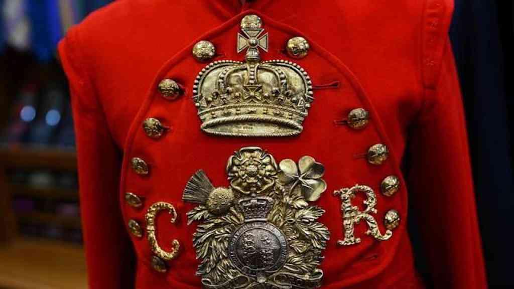 Tropas vestidas com uniformes de lã vermelha brilhante com tranças douradas elaboradas são uma parte essencial da pompa britânica, vista nas ruas da capital no ano passado tanto para a celebração do jubileu da rainha quanto, alguns meses depois, para seu grande cortejo fúnebre em setembro.