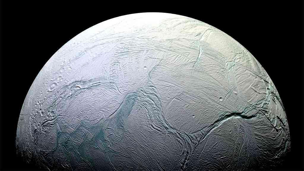 Encélado, uma das 82 luas que orbitam Saturno, é coberto por quilômetros de gelo, o que torna sua superfície a mais refletiva do Sistema Solar. A presença de água abaixo da superfície gelada e vários ingredientes químicos tornam este satélite natural um dos mais desejáveis para os cientistas estudarem e procurarem vida extraterrestre.