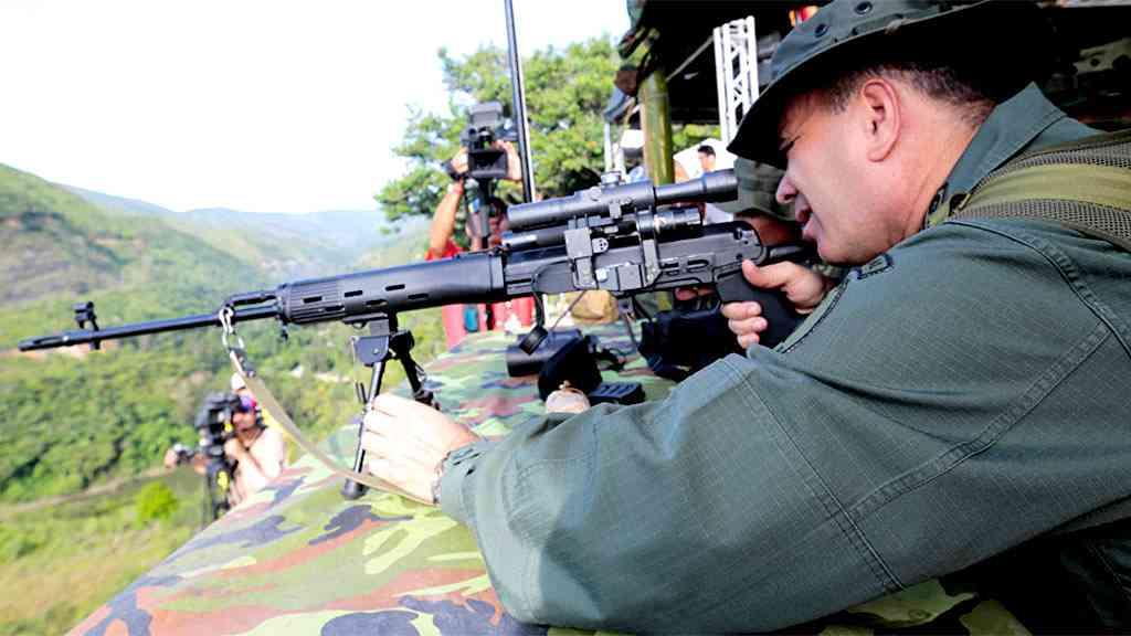 Militar venezuelano treina com metralhadora em exercícios militares realizados neste domingo