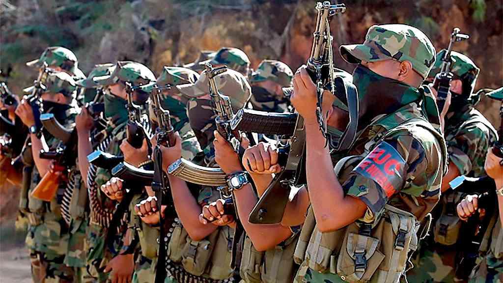 As AUC, de ultradireita, surgiram na década de 1980 para proteger os proprietários de terras dos rebeldes de esquerda, como as Forças Armadas Revolucionárias da Colômbia (Farc), mas se transformaram nos piores perpetradores de violações dos direitos humanos no país latino-americano.