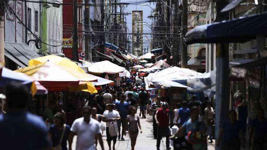Por volta das 13h, o número de lojas abertas e, principalmente, de camelôs na rua dá a impressão de comércio cheio, mas a dona de uma banca de revistas do local, Aldenice Barbosa, 66 anos, confirma a queda no movimento. “Não mudei minha rotina, não mudei nada. Mas mudou o movimento, caiu muito”.