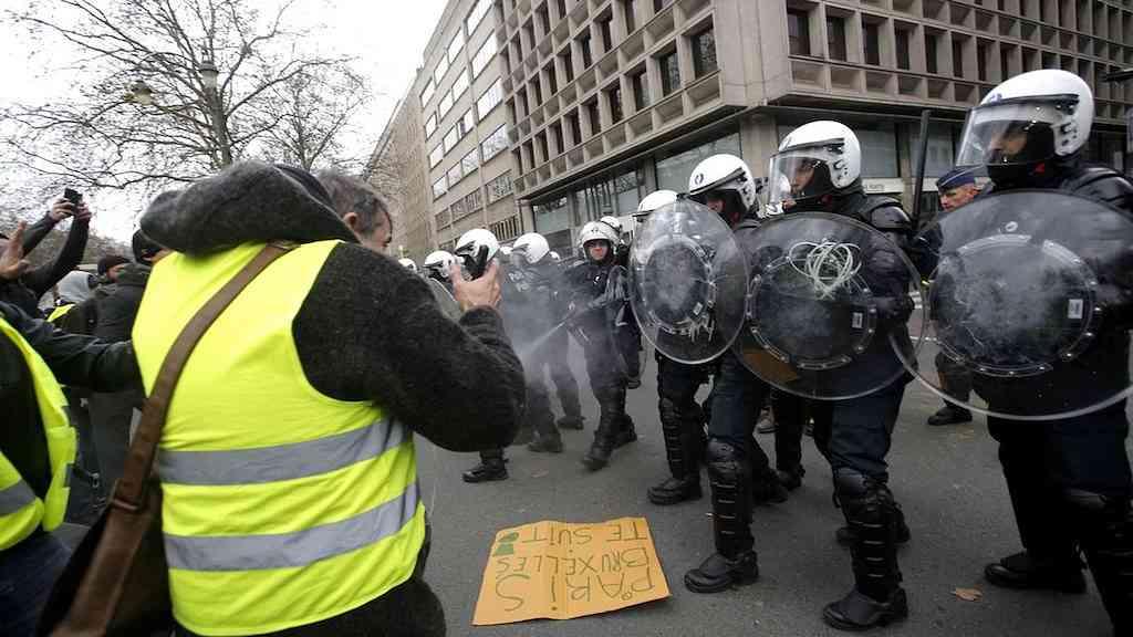 Os agentes utilizaram veículos com mangueiras para apagar as chamas e lançaram gás lacrimogêneo para que os manifestantes recuassem. Ao mesmo tempo, na avenida Champs Élysées, alguns "coletes amarelos" incendiaram objetos, e a polícia respondeu com detenções.