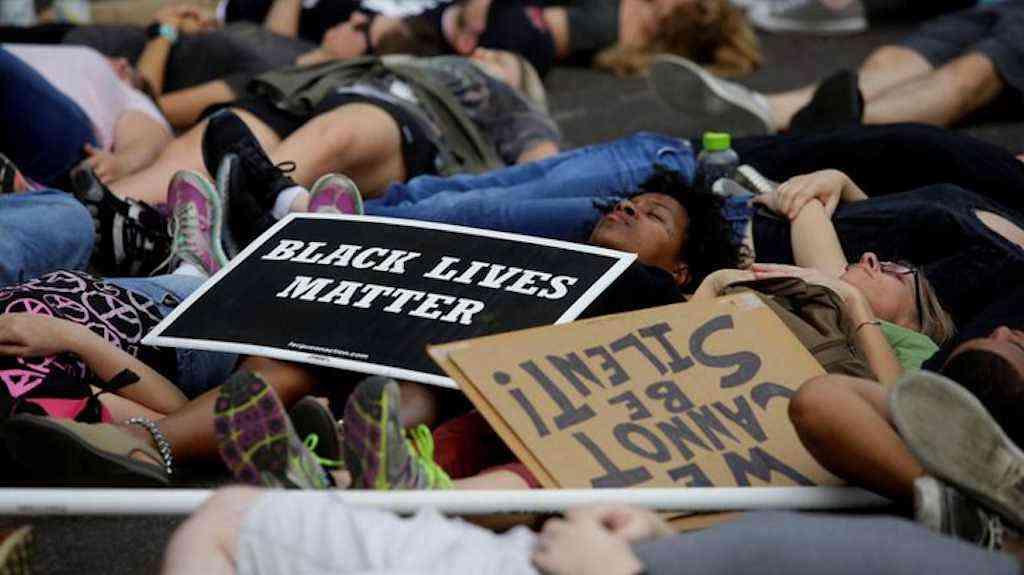 Depois do anoitecer, um pequeno grupo permaneceu no local e houve cenas de desordem; assim como nas noites de sexta-feira e sábado. Manifestantes quebraram janelas e tentaram bloquear o acesso a uma rodovia interestadual, disseram a polícia e testemunhas.