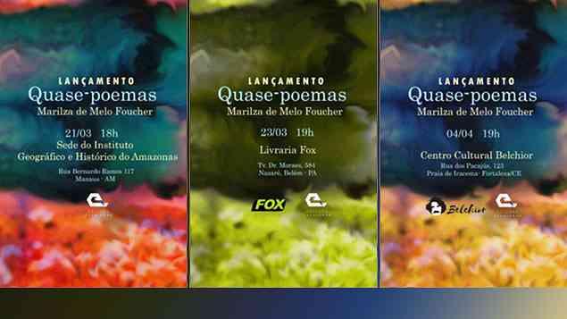 A exatidão no pensamento da economista Marilza de Melo Foucher ganha perspectiva cor de maná-cubiu e o sabor da rebeldia de uma poetisa que se mantém em movimento, seja no Jornalismo — correspondente do Correio do Brasil, em Paris —, ou no livre pensar que, agora, transforma-se em Quase-poemas, título de seu novo livro. A obra foi lançada nesta terça-feira no Bodega Café, em plena Praia de Iracema, na bela João Pessoa; e seguirá no encontro com os leitores por outras três capitais brasileiras.