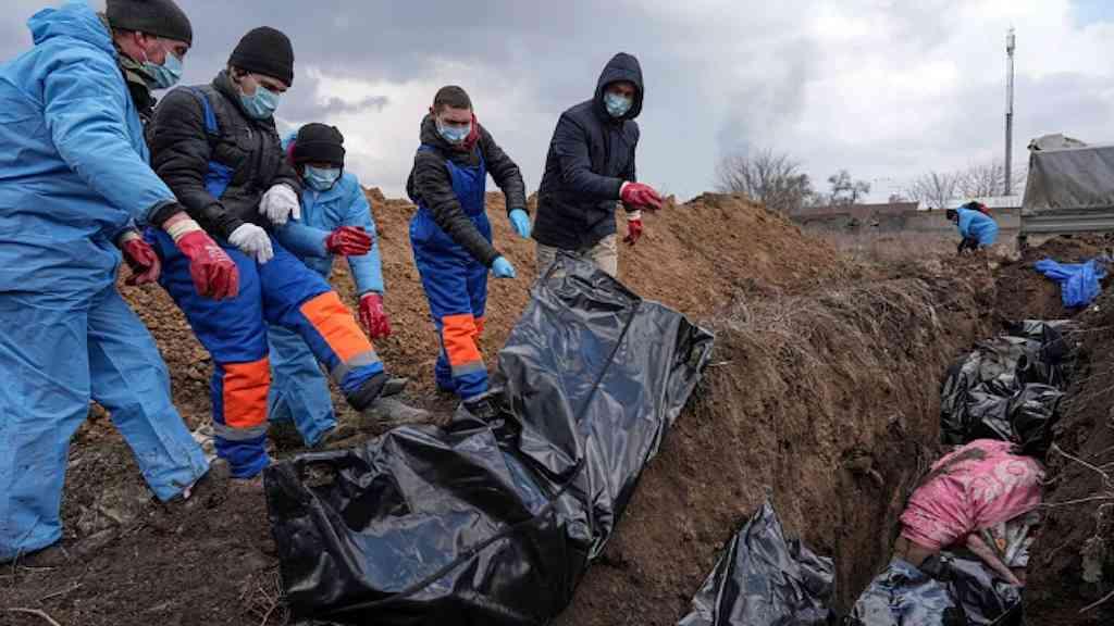 O vice-prefeito da cidade ucraniana de Mariupol, Serhiy Orlov, informou que mais de 1,2 mil corpos foram retirados das ruas e começaram a ser enterrados em valas comuns.Rússia