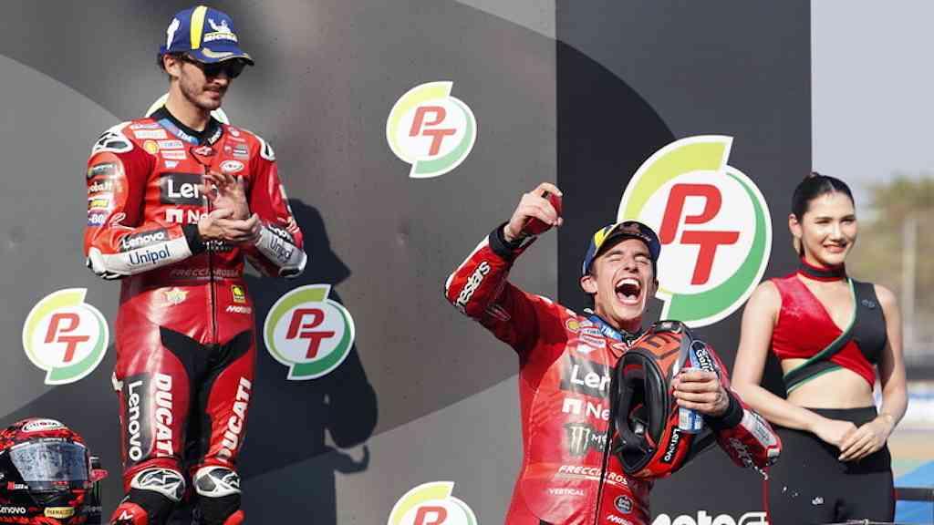 O italiano Francesco Bagnaia, companheiro de equipe de Márquez na Ducati, completou o pódio do GP em Buriram e destacou que seu parceiro “brincou durante toda a prova”, pois o espanhol controlou o ritmo e ultrapassou o irmão no momento que achou ideal.