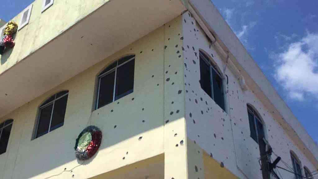A mídia local informou que os atiradores atacaram a prefeitura em plena luz do dia. Imagens e fotos da cena mostram as paredes do prédio municipal crivadas de balas.