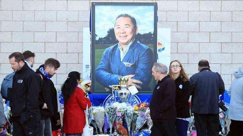 O proprietário do clube, de nacionalidade tailandesa, e outras quatro pessoas perderam a vida no sábado quando o helicóptero no qual viajavam caiu depois de decolar do gramado do King Power Stadium, onde o Leicester disputou uma partida da liga inglesa contra o West Ham (1 a 1).